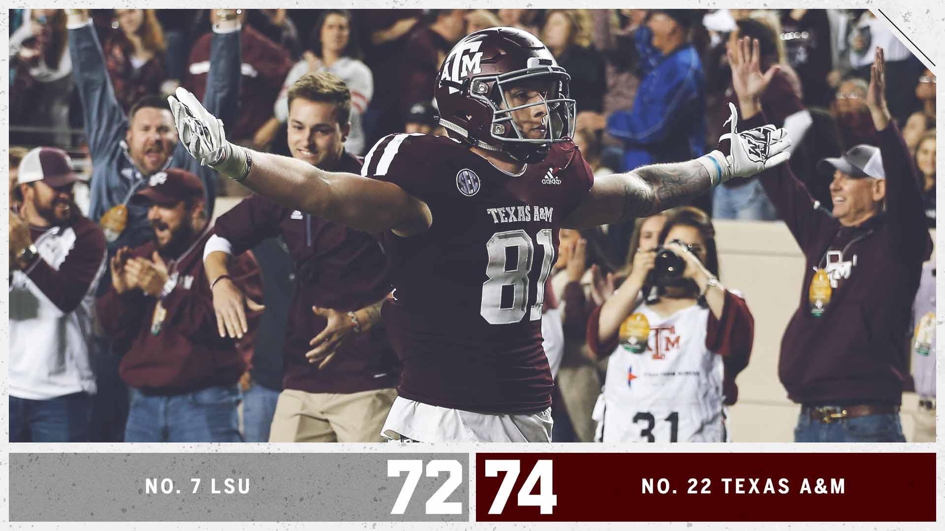 Espn On Twitter Historic Game In College Station No 22 Texas A M Upsets No 7 Lsu In 7 Ot In The Highest Scoring Game In Fbs History Https T Co Lfxgllxdpe
